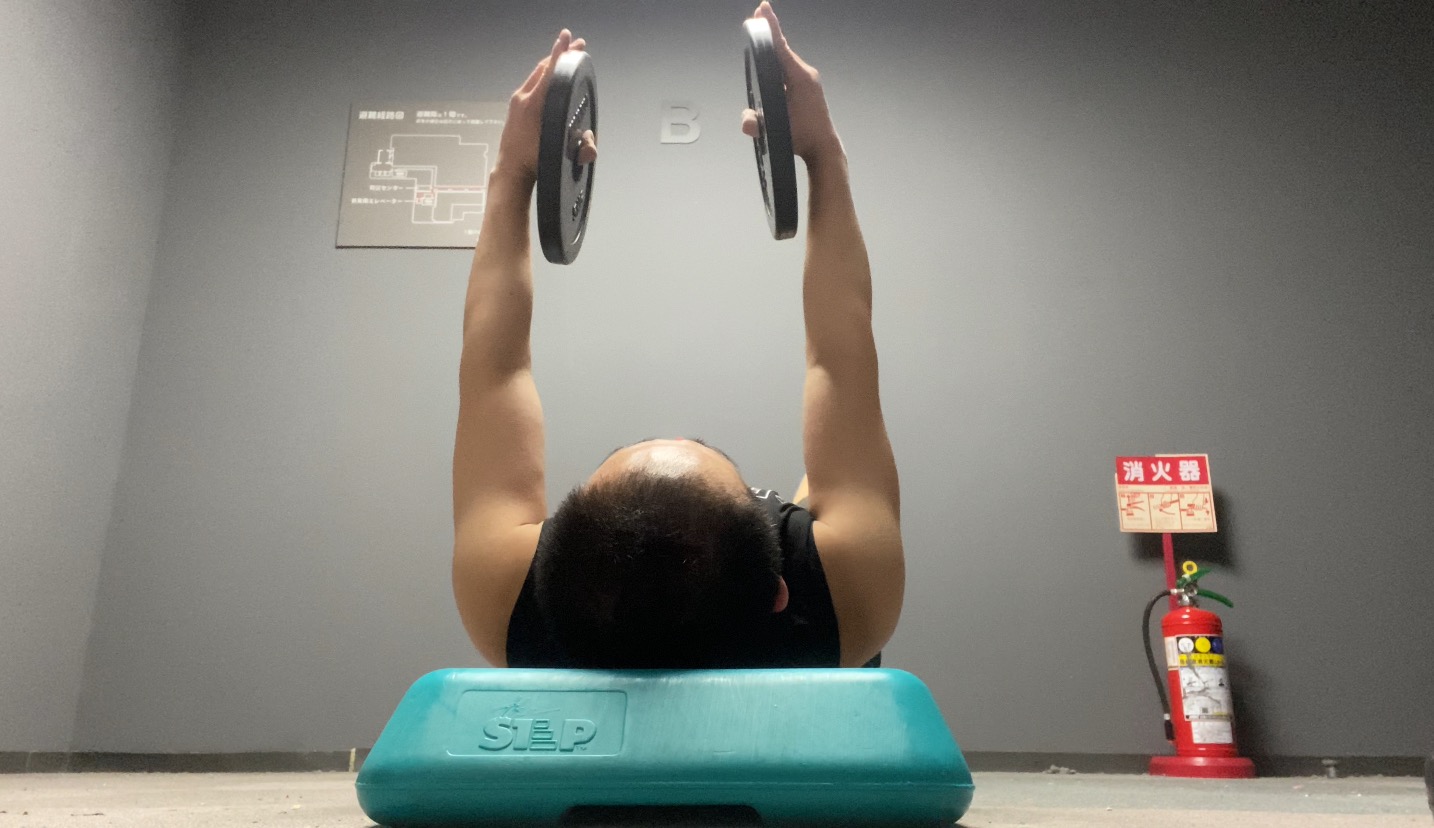・挙上時に肩の後ろがステップ台から離れないように押し当てる(効果を上げるため)