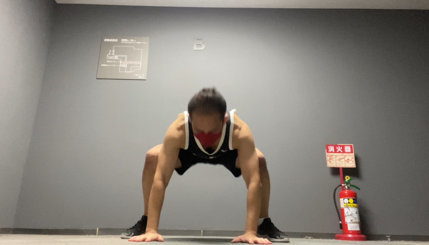 Aモディファイドスプロールでの手をついて身体を低く、そこからジャンプアップして身体を高く動かす