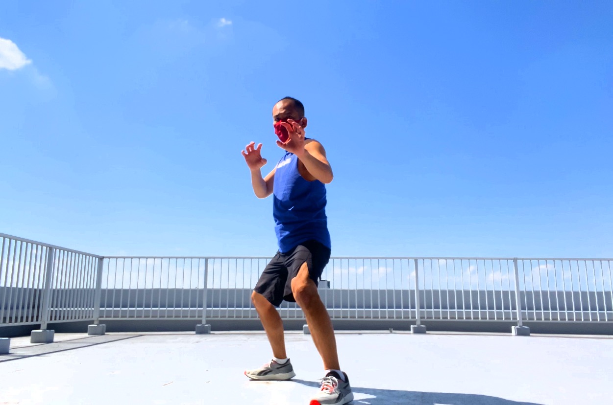 脚を動かしながら両腕も動かすので、パンチはしないですが中々ハードな動作。