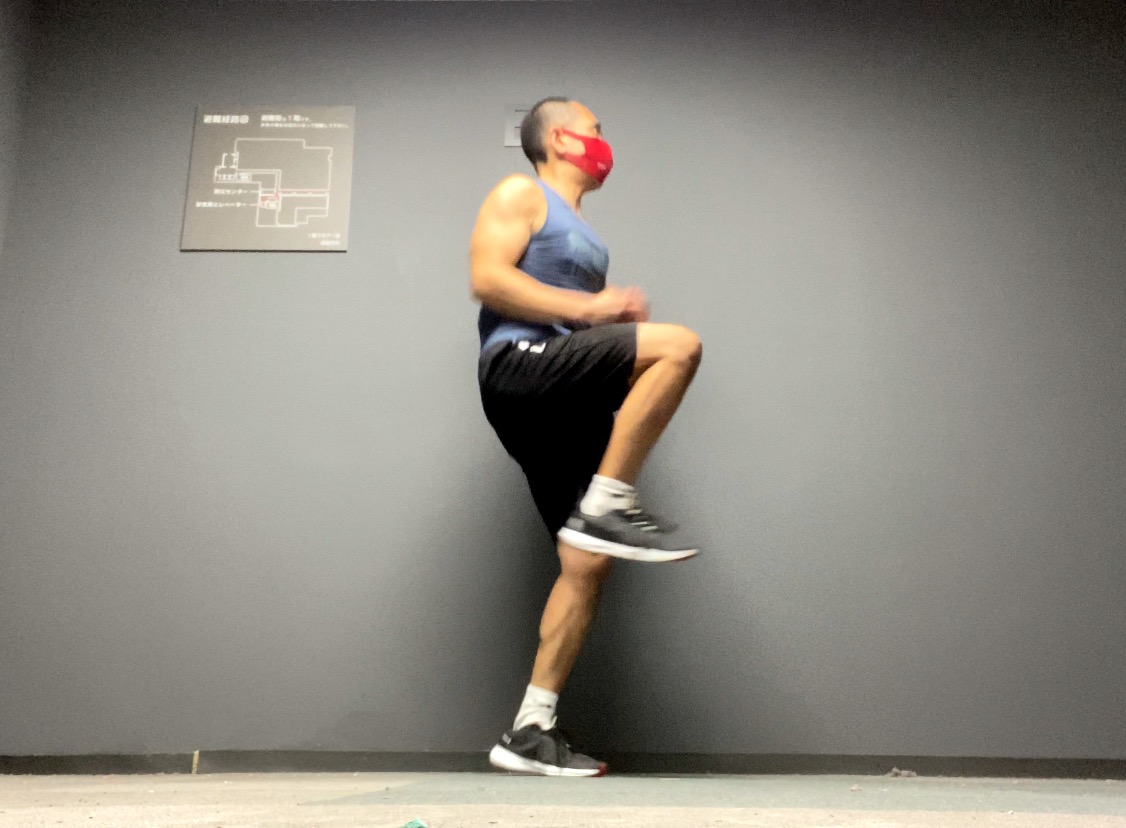 運動量を上げ心拍数上昇→消費カロリー促進を狙った動作。