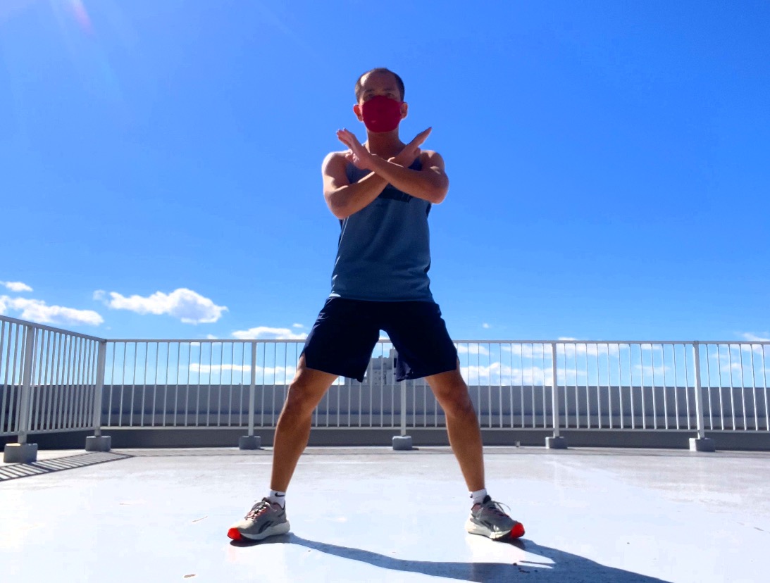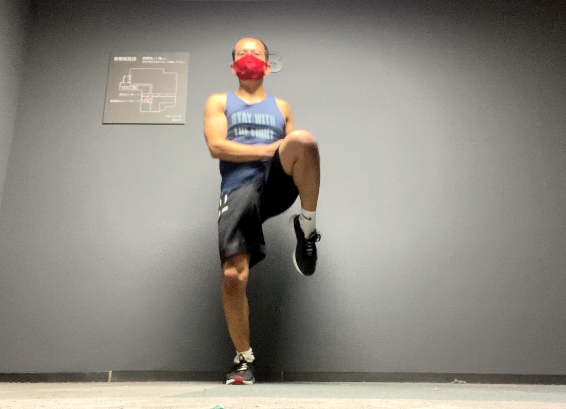 ↑の写真のようにつま先と前膝を正面に向けて、下半身の筋肉に対して自重での適切な負荷を掛けましょう!