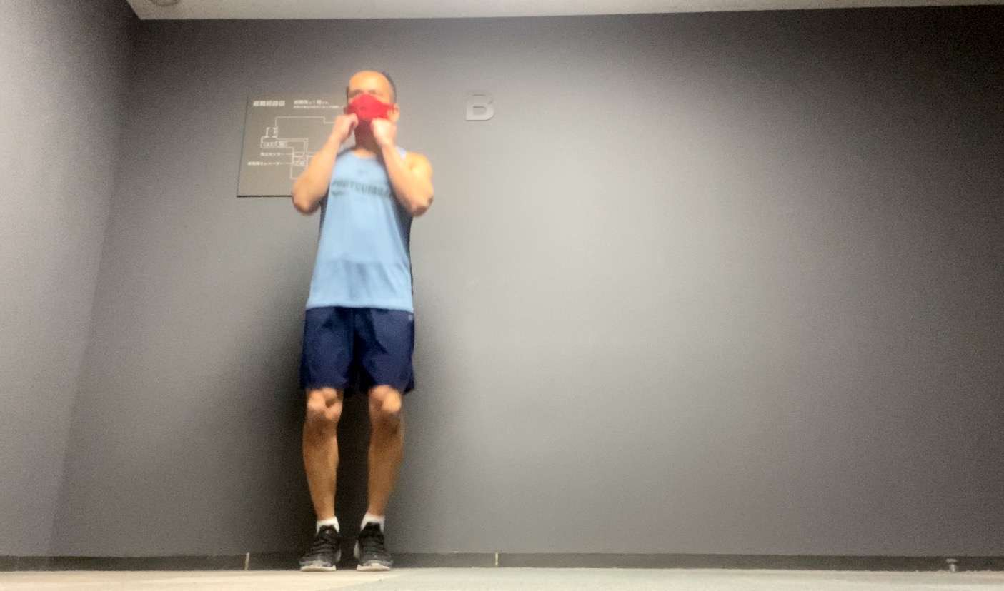 下半身の筋肉をより動員させ、筋温を上げていきます。