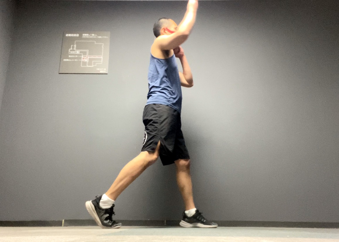 打ち込み時は肘関節90度辺りまでで留めるようにします。