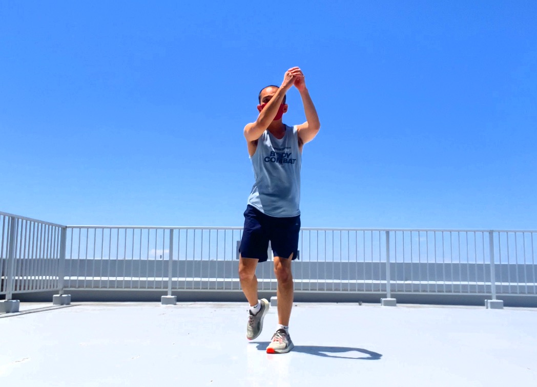 完成形ではダブルバックニーからすぐにジャンプキックに移行するので、足元がもつれないように注意しましょう!
