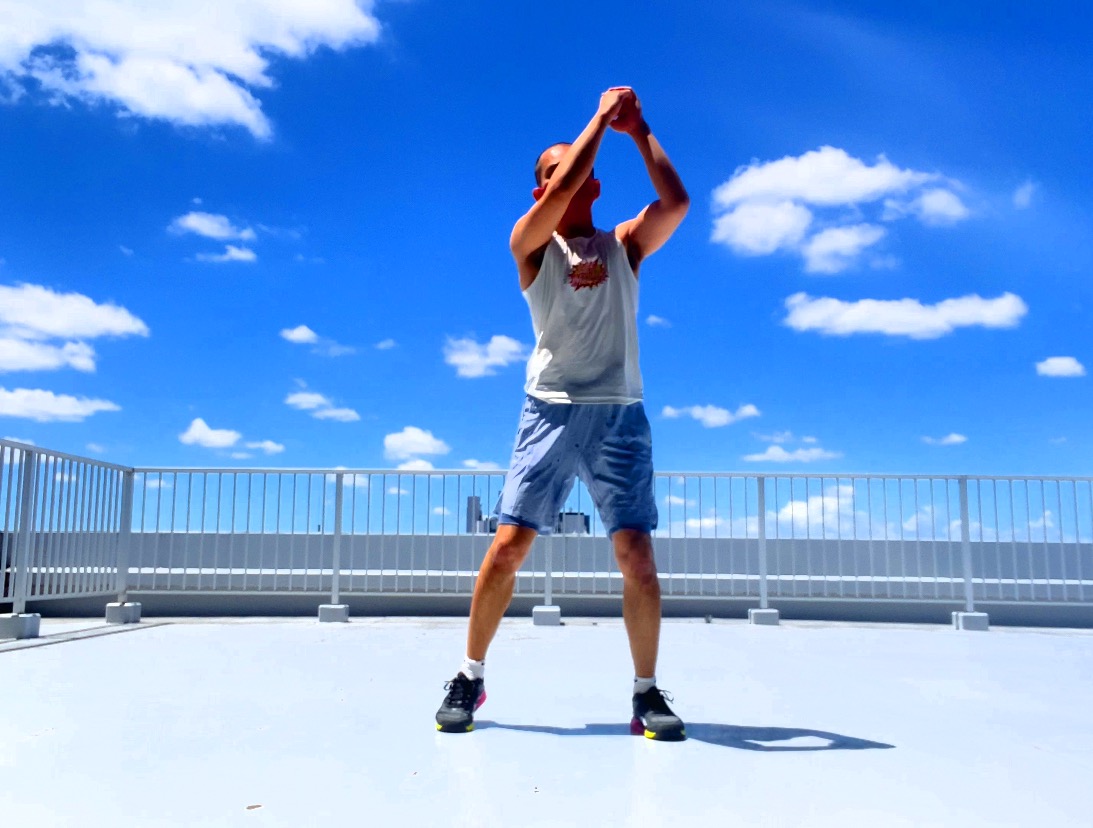正式コリオでの「ダブルボルト+スプロールジャンプ」をドロップスクワット4回に変えます。