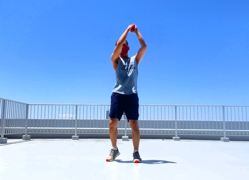 簡単な動作ですが、運動強度を極端に落とさないようにしたいところ。