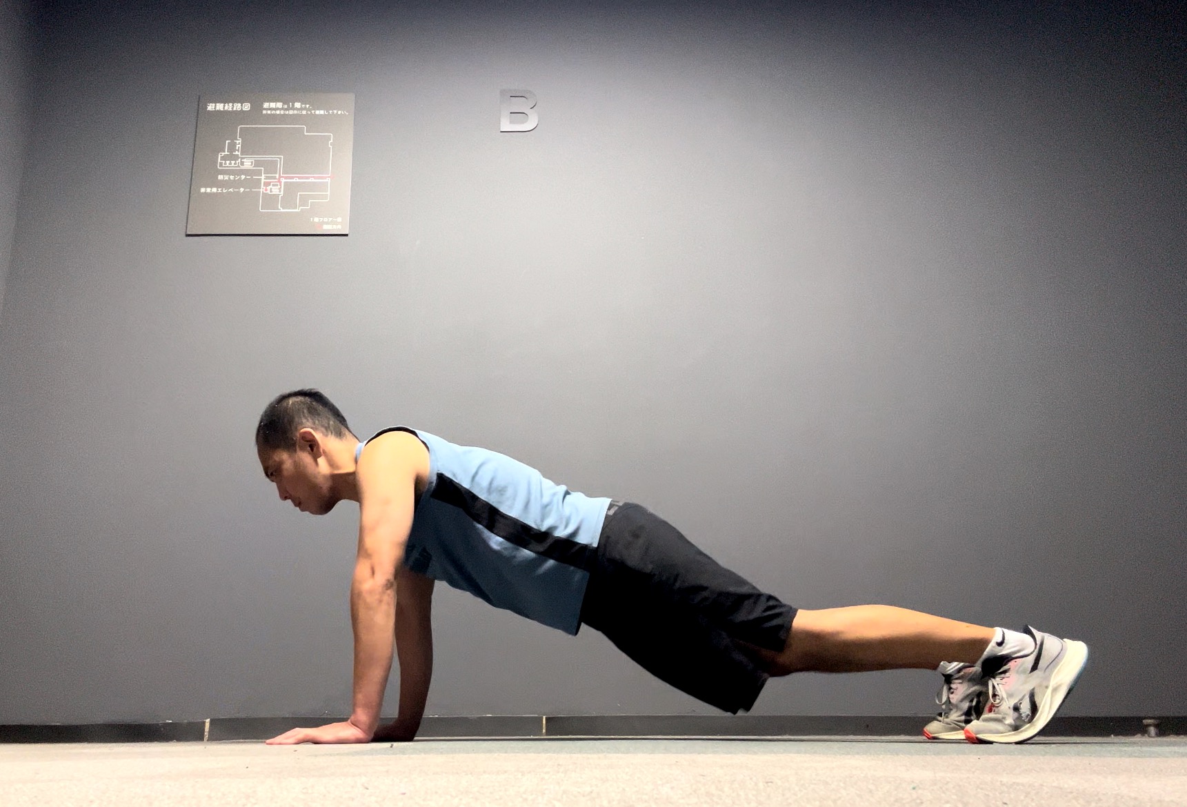 まずは手の平を床に置いた時のポジショニングが大事なコアトレ種目のプランク。