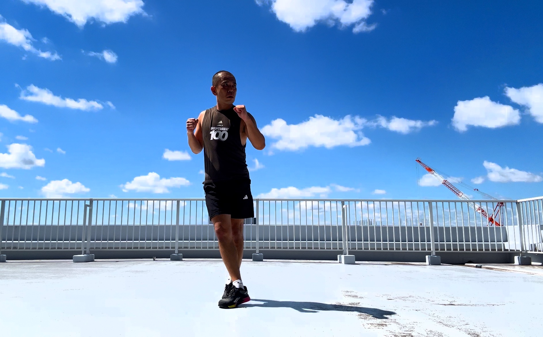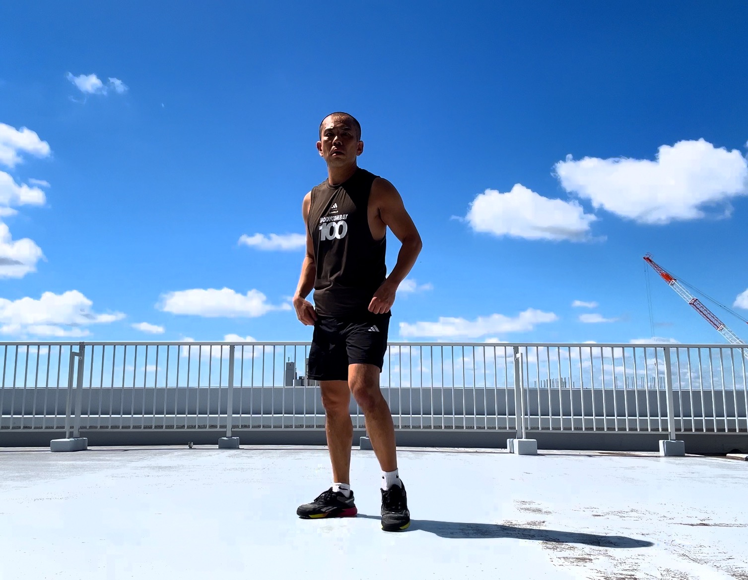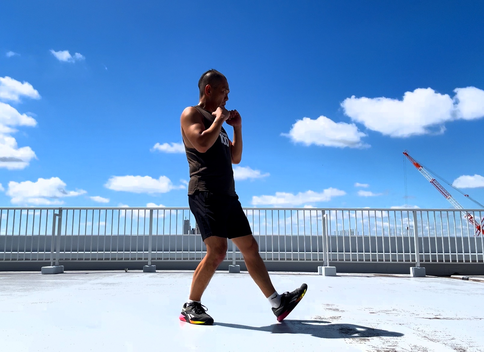 この踏み出し方が、ワンステップ・バーティカルサイドキックの特徴とも言うべきポイント1つ目です。