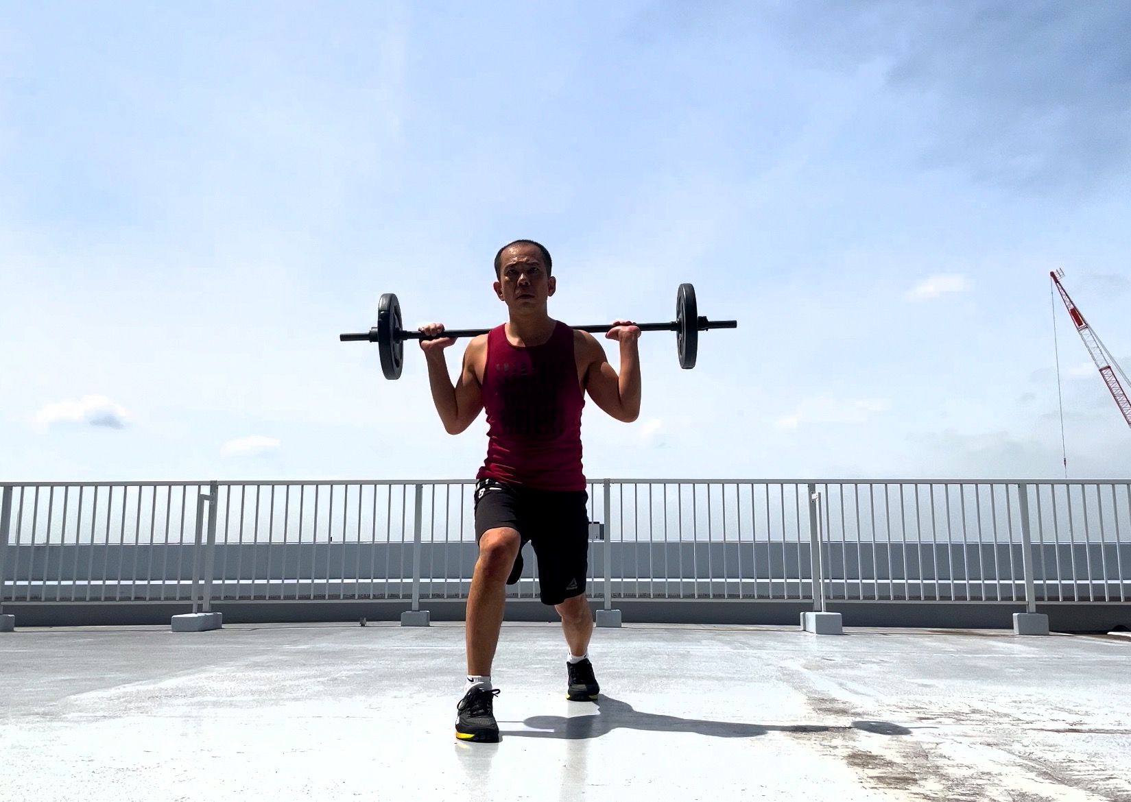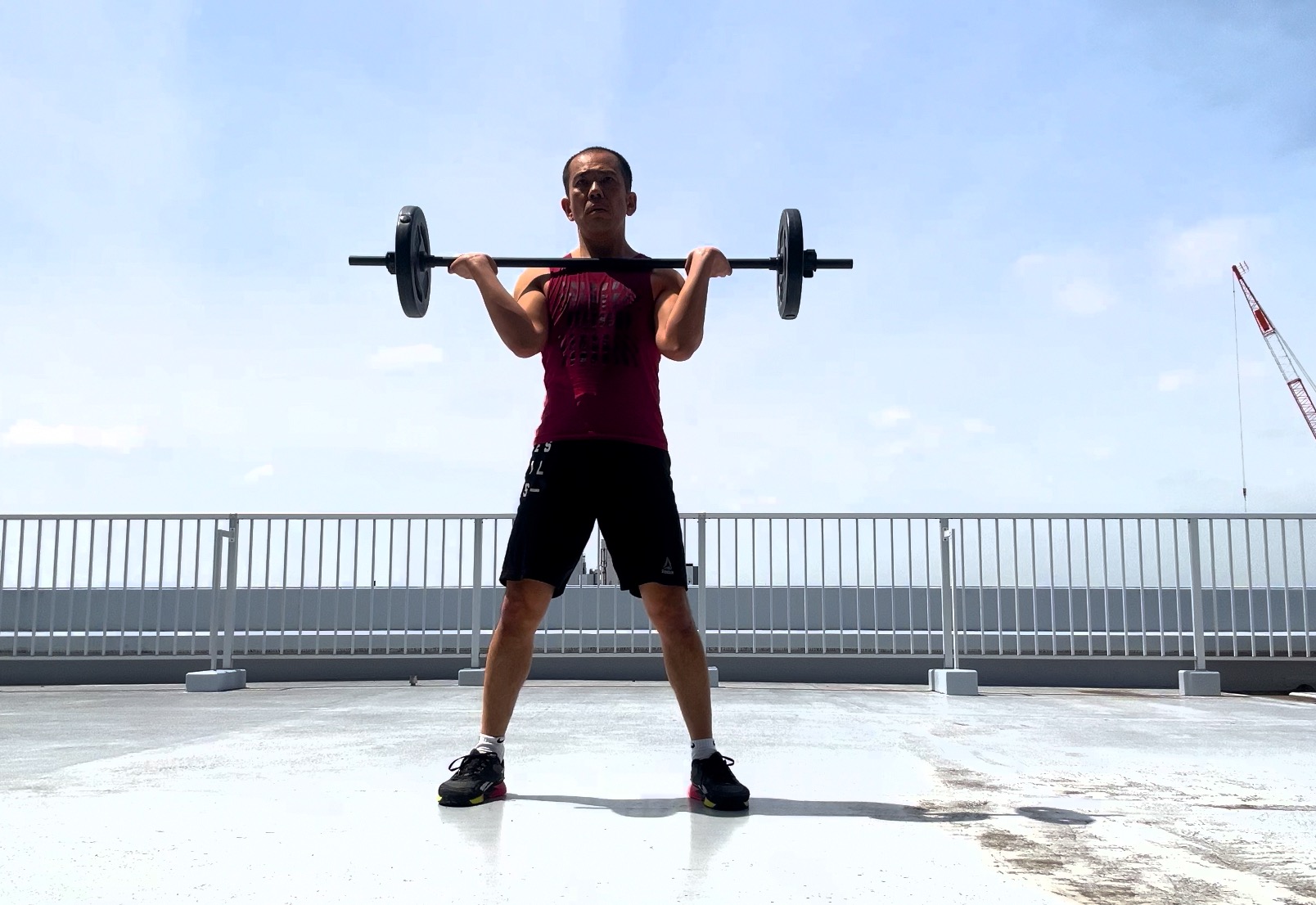 「バーベル担ぐ」
