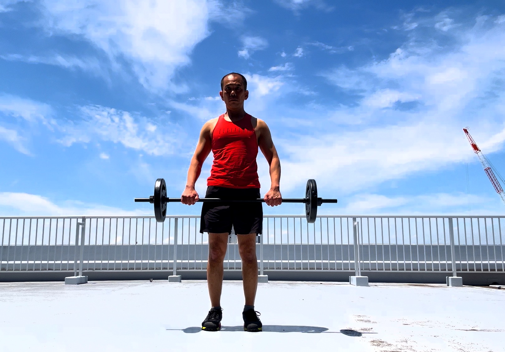 ・バーベルは身体からコブシ一個分程度開けて繰り返す