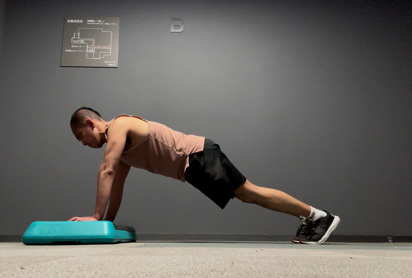 最初のフェーズ1では、前段的にトライセプスプッシュアップのみを行います。